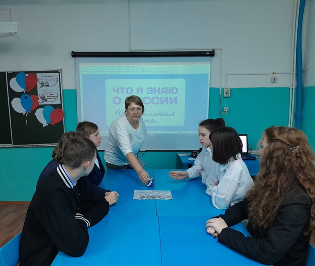 В преддверии Дня народного единства учащиеся 10 класса Киваевской школы приняли участие в настольной игре «Что я знаю о России» по категориям: История, География, Интересный факт, Вопросы и ответы. Победила команда девочек.